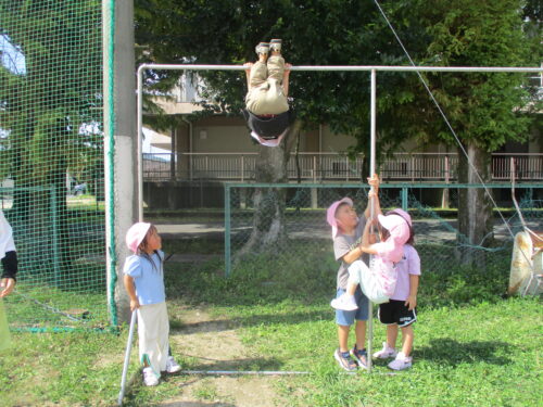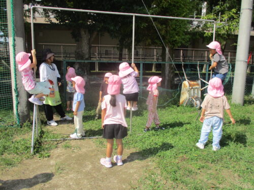 中央グラウンドにも行って、鬼ごっこをしたりかけっこをしたり、たくさん身体を動かしました。