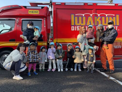 遠くに消防車を見つけました!!