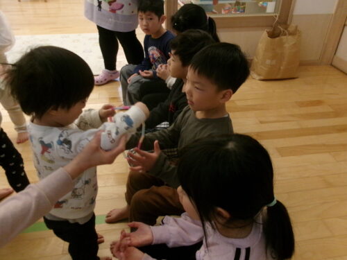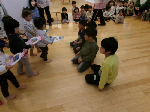まずは、ひよこ組、りす組さんとのプレゼント交換。